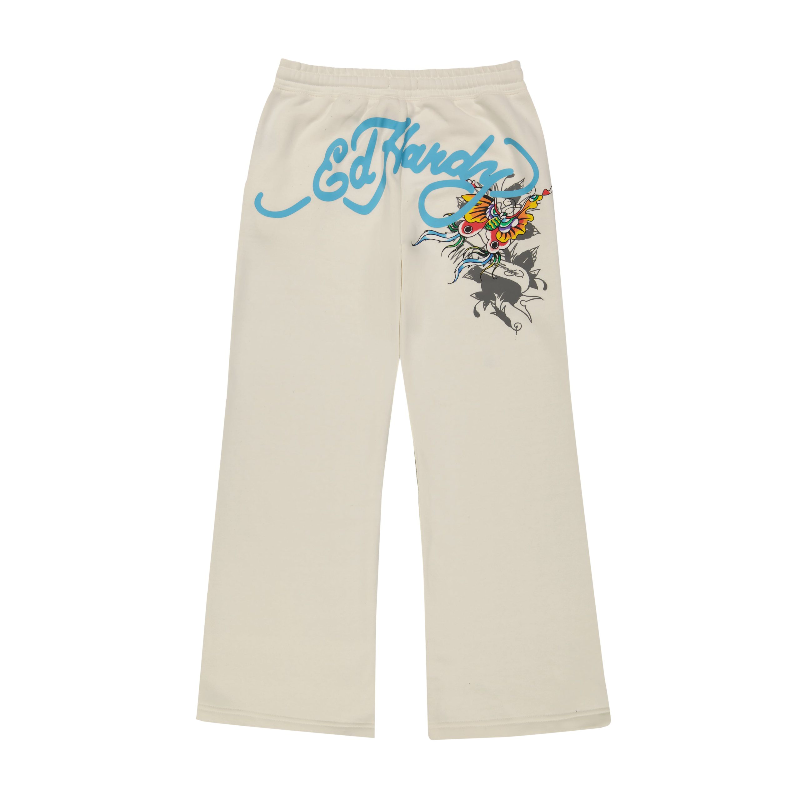 Ed Hardy’s fleece sets add a modern twist to the styles that reigned in the early 2000’s . These wide leg sweatpants are complete with signature butterfly graphicsÂ