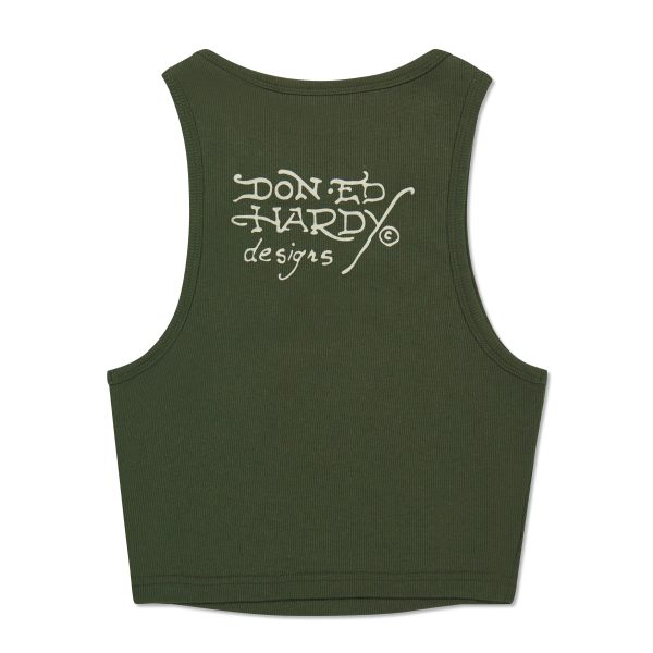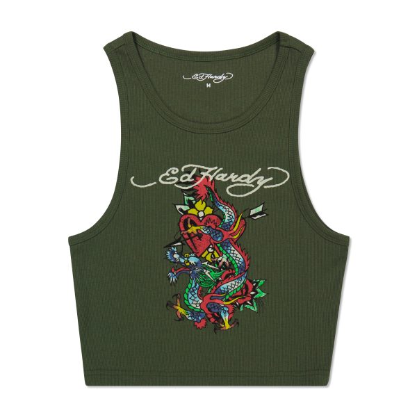 The Dragon Heart Rib Knit Tank from Ed Hardy is a captivating blend of mythical allure and fashion-forward style. Made with soft and stretchy rib knit fabric. this tank is designed to make a bold statement.