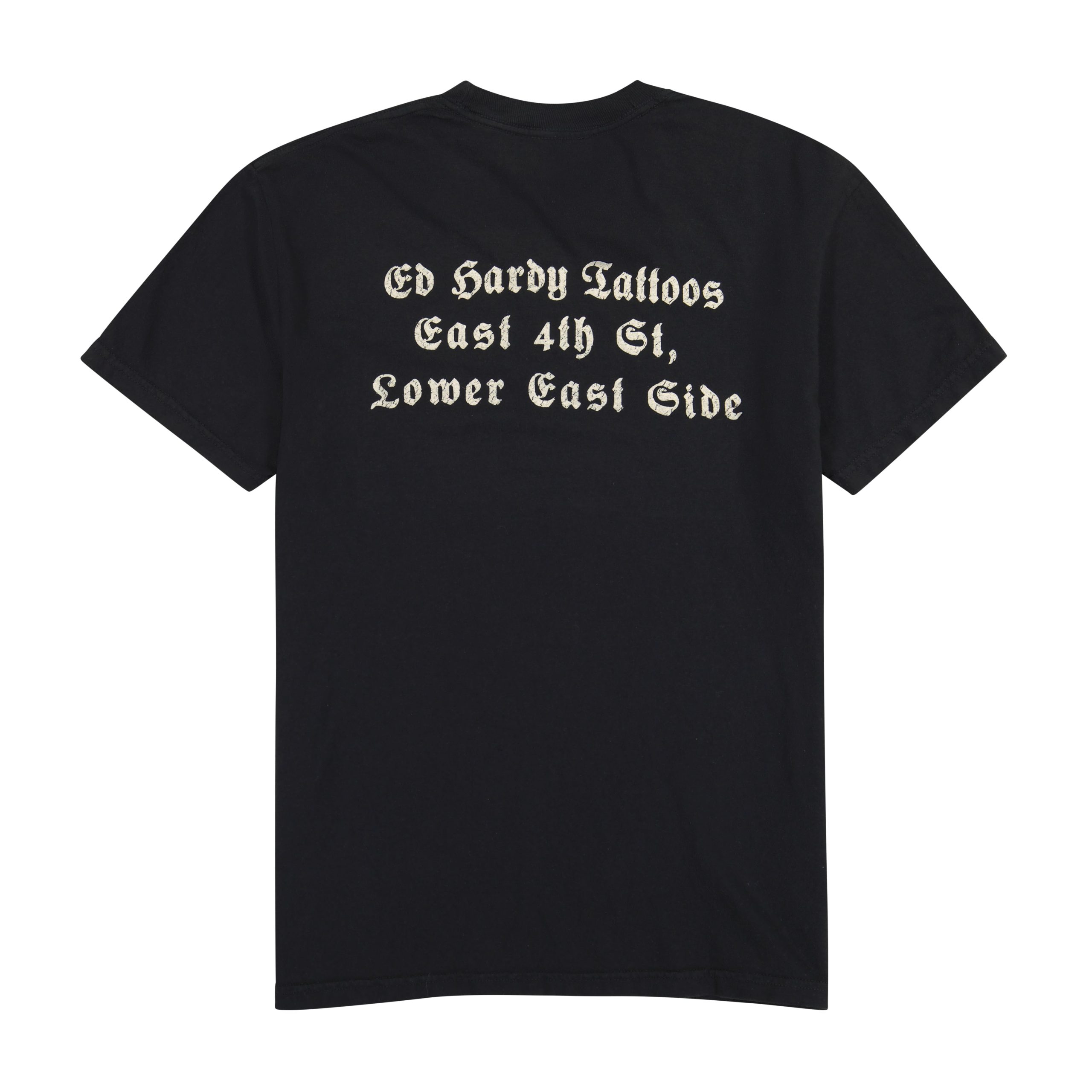 100% cotton tee treated with a garment wash to evoke a vintage feel. Complete with archival Ed Hardy logos and LKS skull graphic.