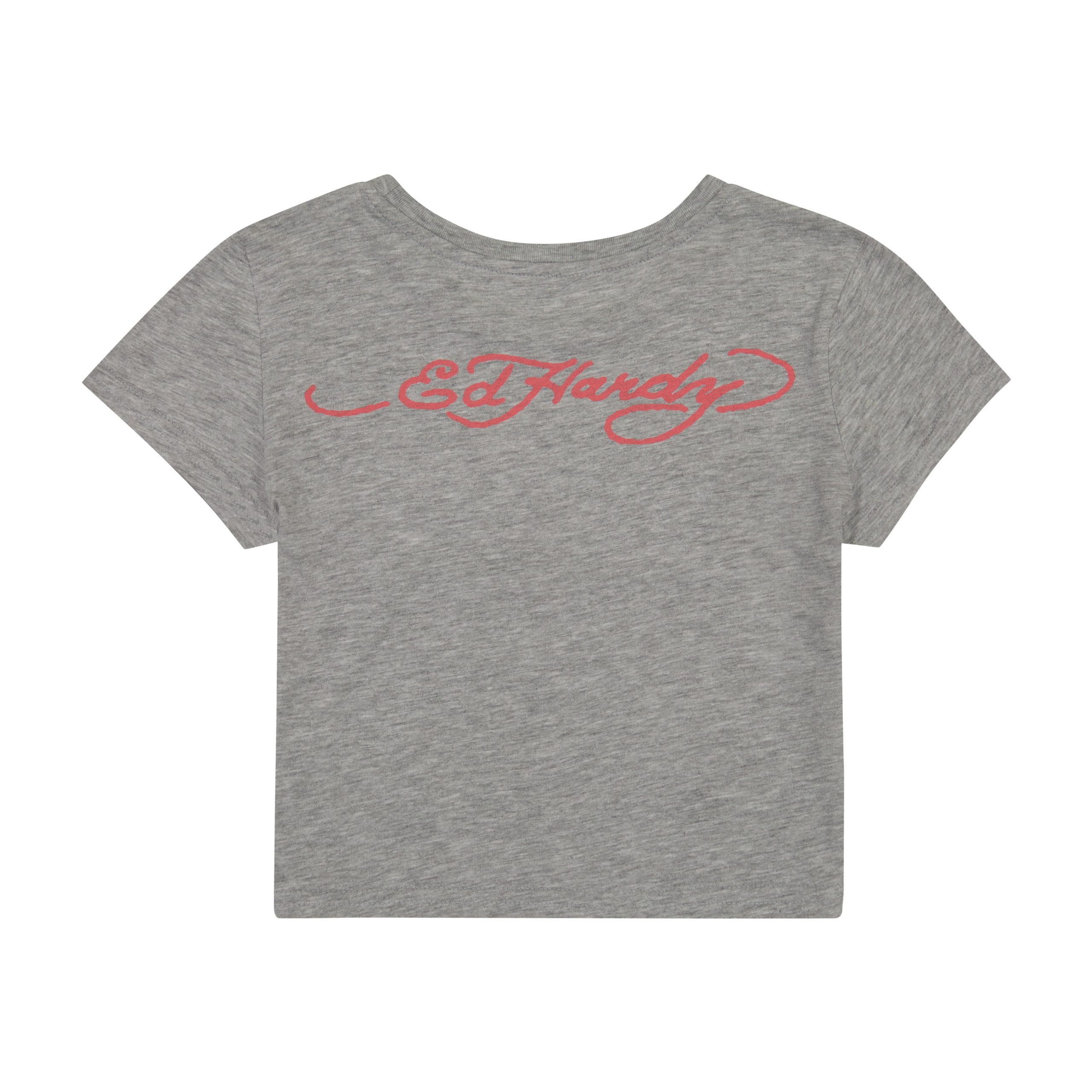 Our classic cropped baby tee silhouette complete with a signature rhinestone Ed Hardy cobra graphic. Constructed from high quality cotton in the shade heather gray.