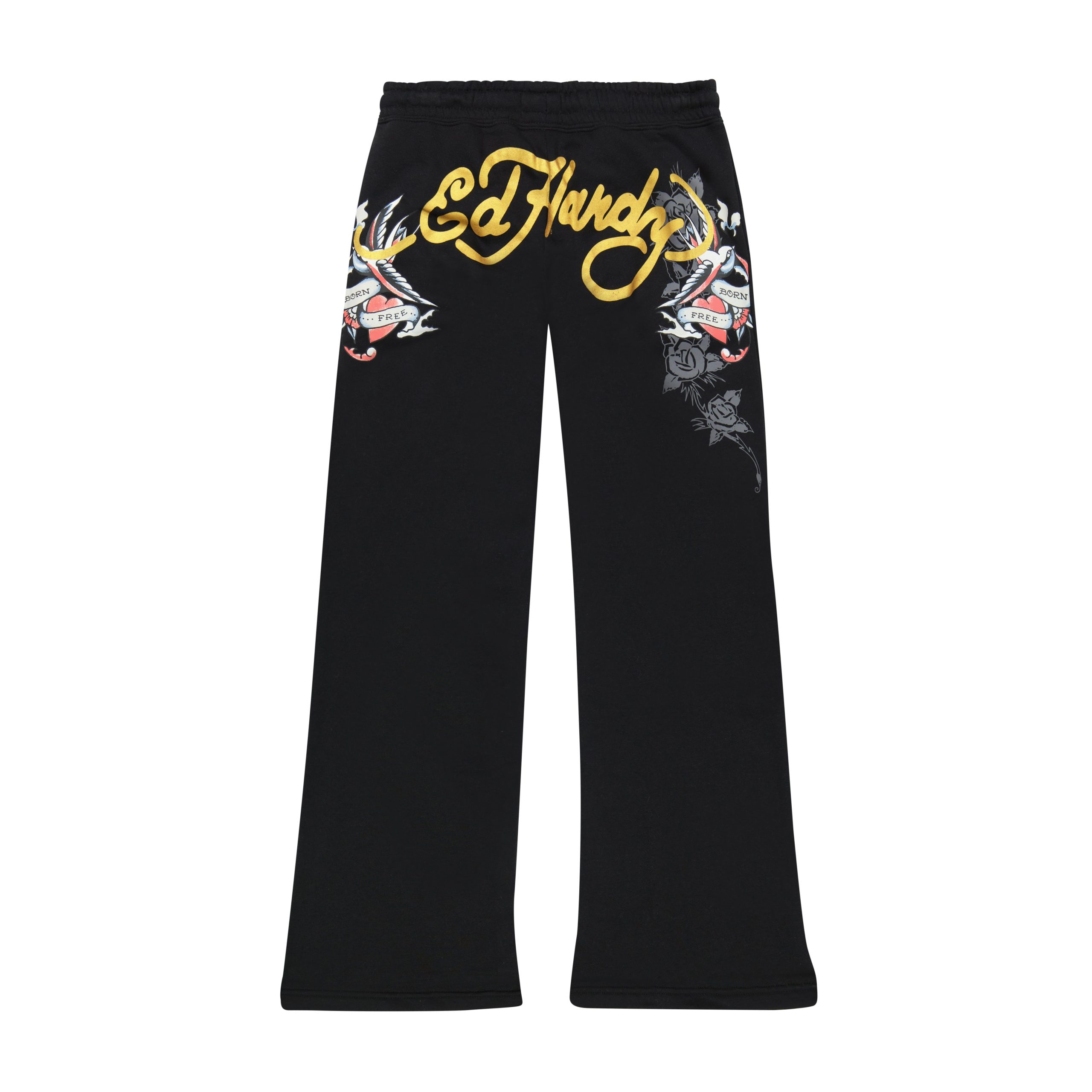 Ed Hardy’s fleece sets add a modern twist to the styles that reigned in the early 2000’s . These flattering sweatpants are complete with signature rose dagger and swallow graphics.